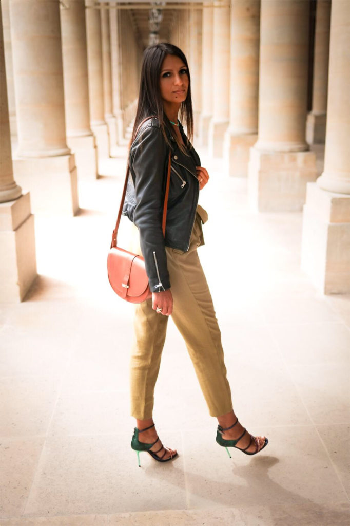 J’y ai associé une paire de sandales à talons et un débardeur noir tout simple. Pour compléter le look, j’ai mis des bijoux : un bracelet et un collier de la nouvelle collection Hipanema nommée Malibu, que j’adore. Et pour terminer, mon sac d’amour : le Claude de Sézane !
